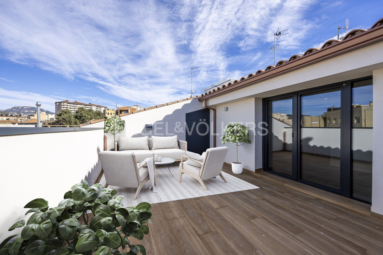 Donpiso comercializa esta fantástica Obra Nueva ubicada en pleno Centro de Terrassa. Se trata de la primera promoción plurifamiliar de viviendas en Cataluña certificada por el Passivhaus Institut Alemán. Como decíamos, ubicada en el mismo casco histórico de Terrassa, en la calle Camí Fondo, este edificio ofrece luminosas viviendas exclusivas de 1, 2, 3 y 4 habitaciones, con tipologías tipo: plantas bajas con jardín, pisos en planta primera y segunda con balcón, y amplios dúplex con terraza con espectaculares vistas a la Mola. Además de las características particulares de cada una de las viviendas, este edificio dispone de una agradable zona comunitaria con piscina, zona solárium y zona de coworking, aspectos estos que lo hacen muy diferente a cualquier otra obra nueva que podamos tener en la ciudad de Terrassa. En cuanto a los acabados, podemos decir también que estos son de gran calidad cuidando al máximo cualquier tipo de detalle. Passivhaus garantiza un alto nivel de aislamiento térmico y de hermeticidad en el aire, ausencia de puentes térmicos, ventanas de altísima calidad y ventilación mecánica controlada de doble flujo con recuperación de calor. El objetivo es alcanzar un excelente nivel de confort con una constante renovación del aire para una mejor higiene y calidad. Además de disponer de una calificación energética Letra A, tiene por objetivo reducir drásticamente el consumo energético hasta un 90% respecto a un edificio convencional, creando uno saludable y confortable ambiente, priorizando el control pasivo de la transferencia de calor por la envolvente térmica. Su alto estándar de ahorro energético también hace que la hipoteca para este tipo de viviendas, llamada verde, disfrute de una bonificación al tratarse de una vivienda sostenible. Localizada a tan sólo 7 minutos a pie de la estación del Nord y a 5 minutos del Mercado de la Independencia, lo que hace que dispongan de todos los servicios tipo comercios, restauración, ocio, cultura, colegios, médicos,? , para que la comodidad de vivir en estas viviendas, esté más que garantizada. Terrassa Haus, un valor seguro con garantía de futuro. Mobiliario de las imágenes no incluido en el precio de las viviendas. Le recomendamos concertar una visita sin compromiso. Entrega inmediata.Fotos del piso