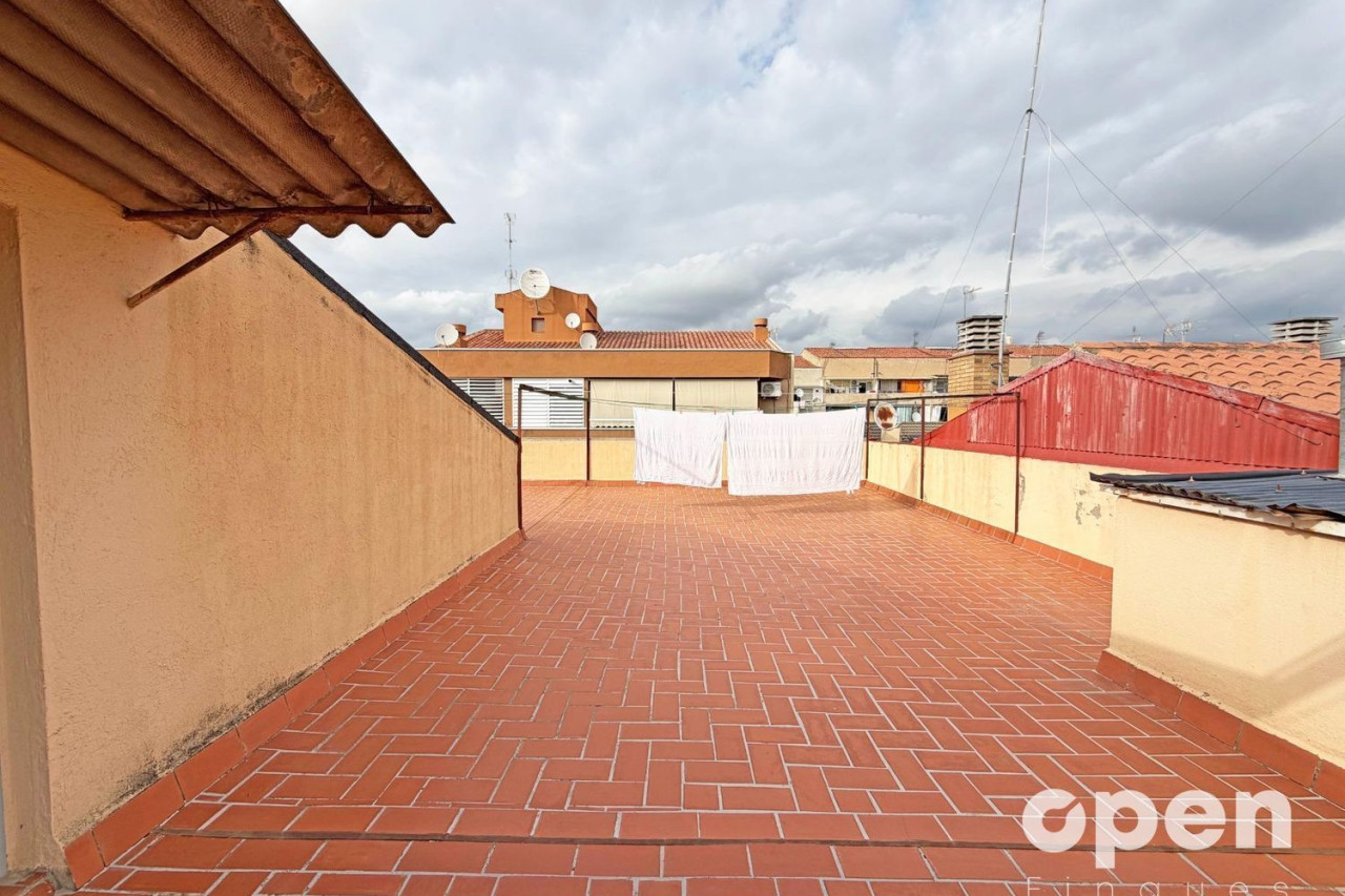 Cabestany Finques i Apialia Terrassa ofereix en exclusiva aquest àtic. Superfície construïda de 107 m2. Superfície útil de 98 m2. Finca sense ascensor. El pis està situat en la 3ª planta sense ascensor.Distribució: menjador-estar amb sortida a balcó, cuina independent, 4 habitacions (2 dobles), bany complet amb dutxa, lavabo, safareig i gran terrassa comunitaria.