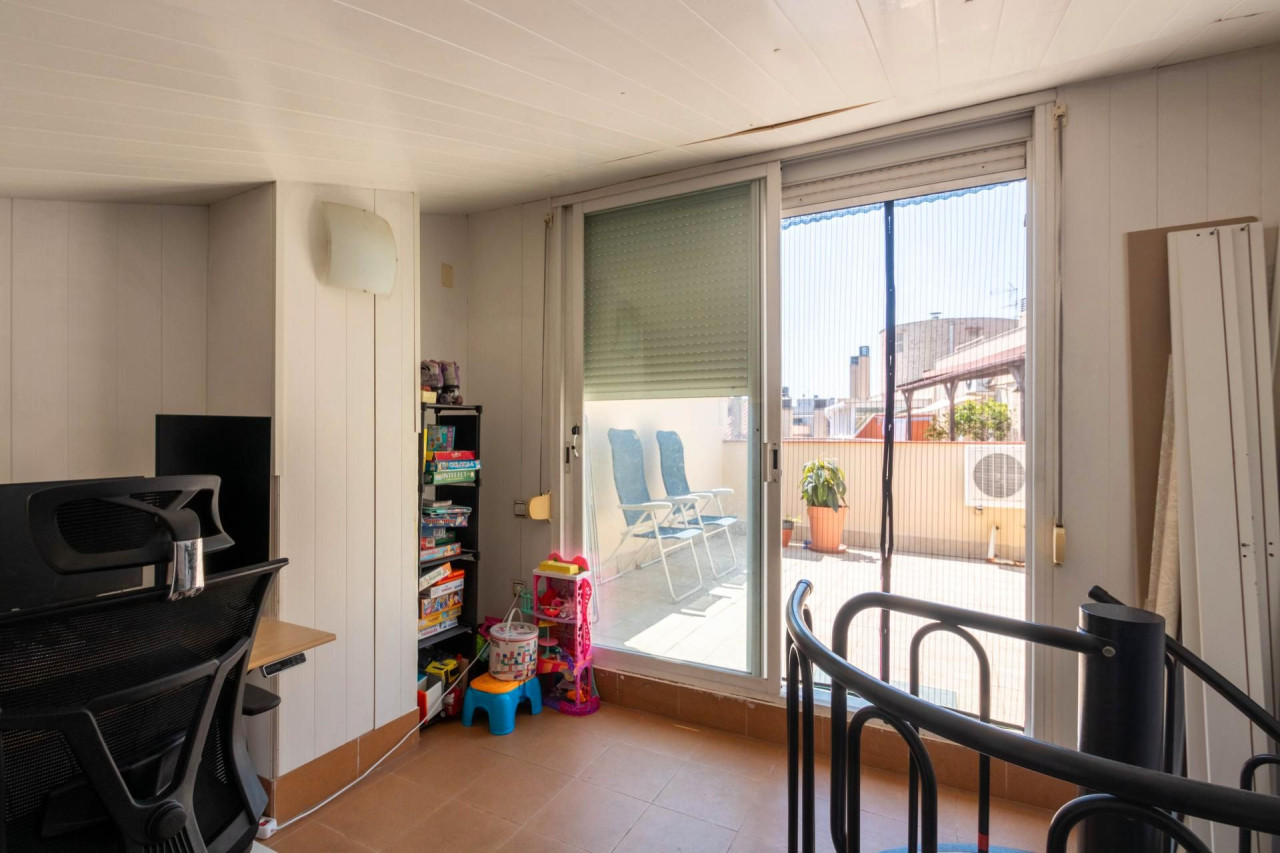 3315_Situado en una de las mejores zonas de Terrassa, en el Centro y a pocos metros del Parque de Vallparadís, este magnífico ático dúplex ofrece una combinación perfecta de espacio, luz y comodidad. En planta baja, con una superficie construida de 92m², encontramos una cocina independiente, funcional y bien distribuida, y un amplio salón comedor orientado a sur que recibe luz natural durante todo el día, creando un ambiente cálido y acogedor. Esta planta también dispone de dos habitaciones dobles, una habitación individual y dos baños completos, uno de ellos con plato de ducha, pensado para ofrecer el máximo confort y funcionalidad. A la planta superior se accede por una escalera interior que nos conduce a un estudio, ideal como espacio de trabajo o zona polivalente, y desde aquí se accede a una espectacular terraza, perfecta para disfrutar del aire libre, comer, relajarse o pasar tiempo con la familia y amigos. La vivienda destaca por su excelente ubicación, muy cerca de todos los servicios, comercios, escuelas y transporte público, y por la calidad de sus espacios, bien distribuidos y llenos de luz. Una oportunidad única para vivir en un ático con encanto en el corazón de Terrassa.Fotos del piso