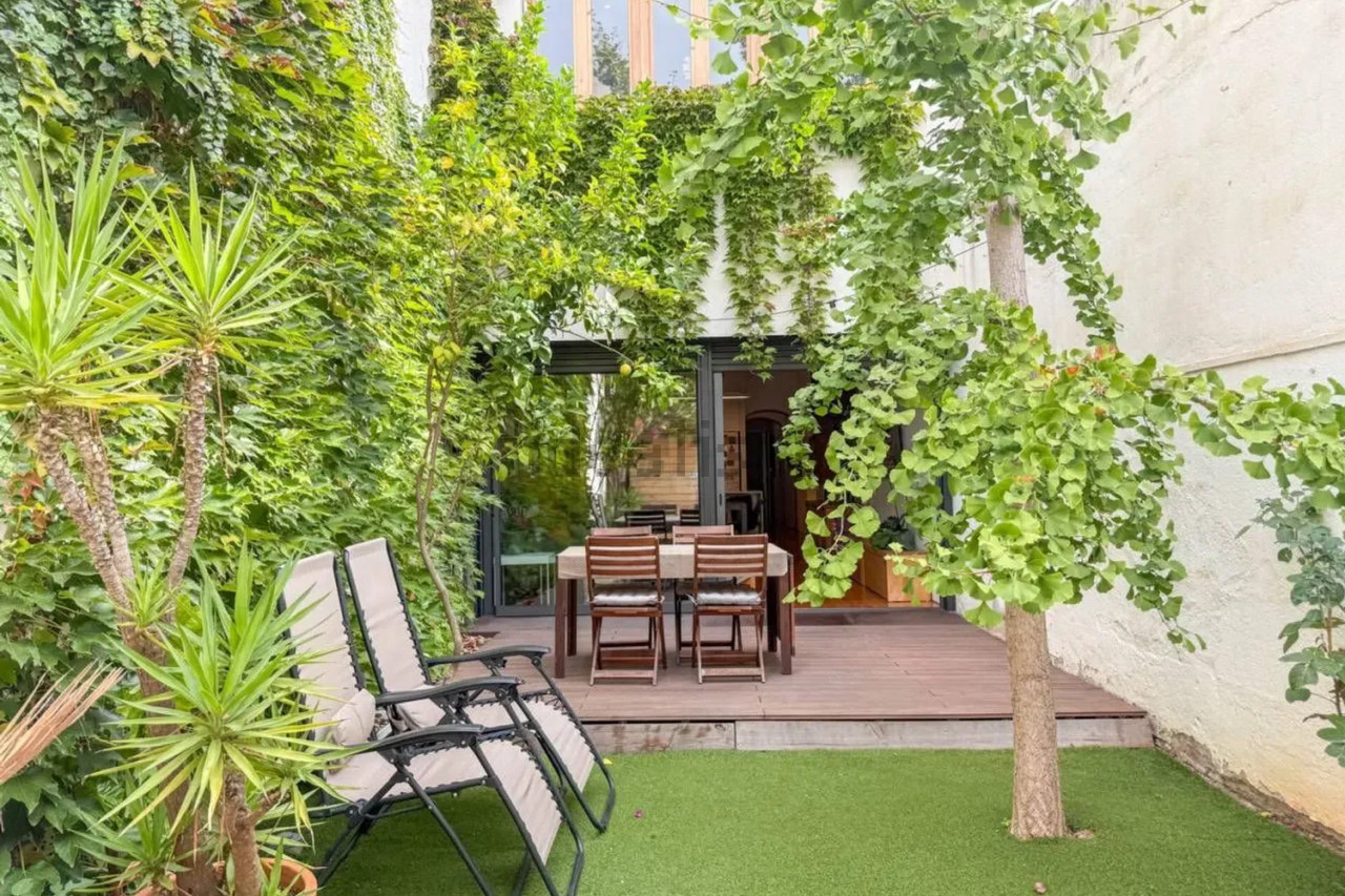 Espectacular casa de 150 m² reformada con mucho estilo, situada en pleno centro de Terrassa. Destaca por su distribución funcional, su diseño moderno con toques de encanto original y su magnífico patio orientado al oeste, perfecto para disfrutar del sol de tarde.En la planta baja encontramos un amplio patio exterior, rodeado de vegetación y con una zona de descanso ideal para comidas o reuniones al aire libre. Al fondo del patio hay un pequeño trastero de apoyo.