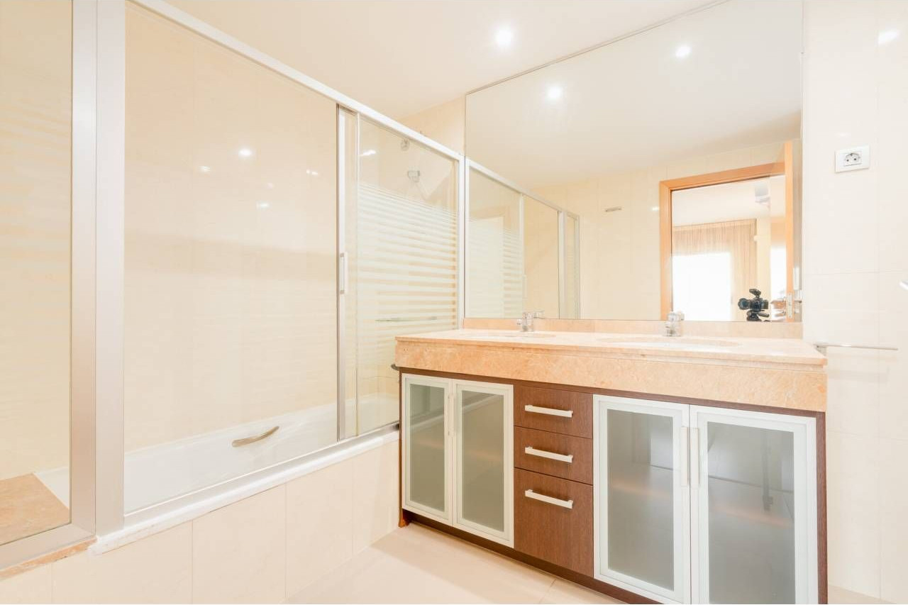 Los acabados son de gran calidad, suelos de parque AC5, carpintería interior en haya, exterior de aluminio marca TECHNAL con cristales dobles insonorizados y sistema de rotura térmica Climalit con gran eficiencia térmica, calefacción a gas natural y aire acondicionado marca Mitsubishi con sistema inverter con muy buena eficiencia energética en todas las estancias con desagüe por bombeo automático, puerta blindada y video portero.